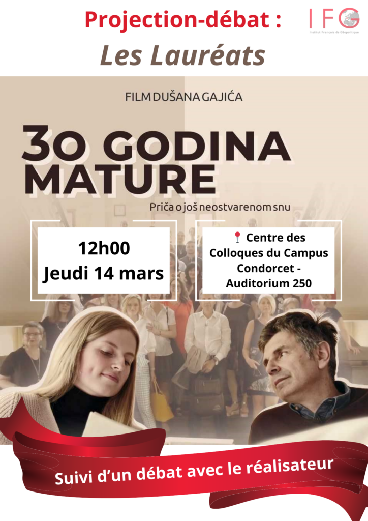 Le jeudi 14 mars, l’IFG projettera “30 Godina Mature – Les Lauréats”, dirigé par Dušan Gajić, au Centre des Colloques du Campus Condorcet à 12h.