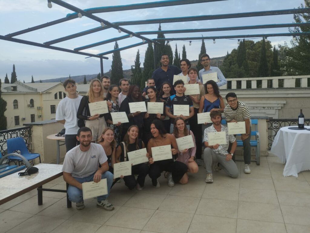 Ce périple s’est conclu par une remise de diplômes organisée par l’Alliance Française et l’Université franco-géorgienne, en présence d’Eva Bertrand et Nato Chuchulashvili, afin de féliciter les étudiant.es pour leur engagement dans la découverte de la Géorgie.